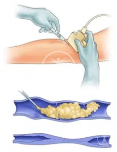 O exame de ultrassom tem a finalidade identificar a causa da doença, gravidade e se há algum comprometimento de outras veias. Também pode ser feita uma avaliação com aparelho de realidade aumentada.