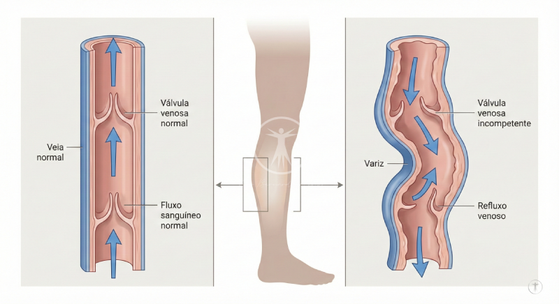 São veias dilatadas, visíveis, tortuosas e salientes que surgem, principalmente, nas pernas. Elas aparecem quando as válvulas responsáveis por direcionar o sangue de volta ao coração não funcionam com eficiência, levando ao acúmulo nas veias.